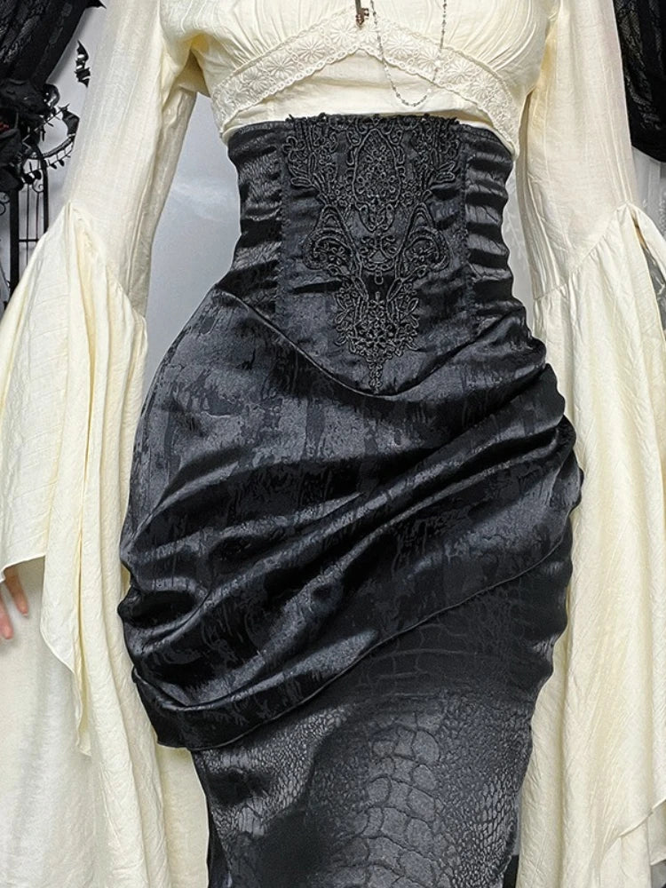 AltGoth Subculture Vintage Gothic Skirt Women Dark Palace Style Y2k E-girl Streetwear Embroidery High Waist Fishtail Skirt Femme