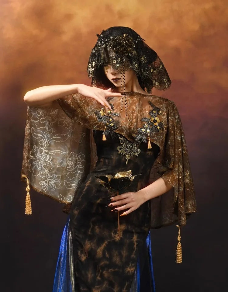 Blood Supply Original Gold Florals Embroidered Classical European Court Bow Cloak Folk Cape Summer Beach Sun-proof
