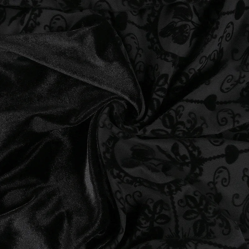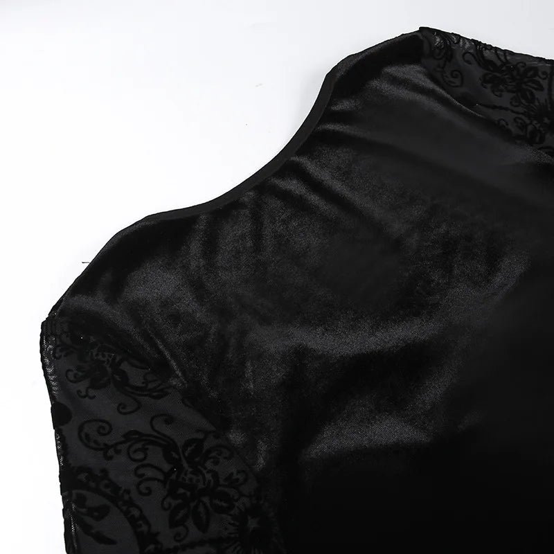 Goth Dark Elegant Vintage Mall Gothic Velvet Dresses Grunge Punk Style Flocked Bandage Dress Women Flare Sleeve Party Alt Outfit