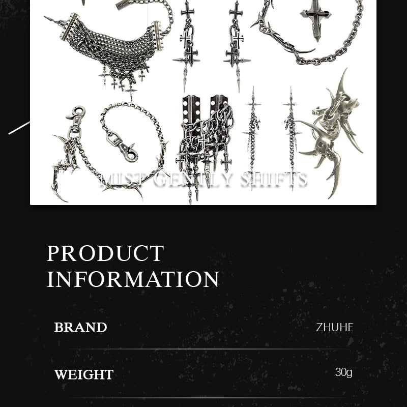 Gothic Cross Chain Jewellery Set for Women Men, Punk Statement Necklaces Rings Accessories, Edgy Party Jewellery Collection