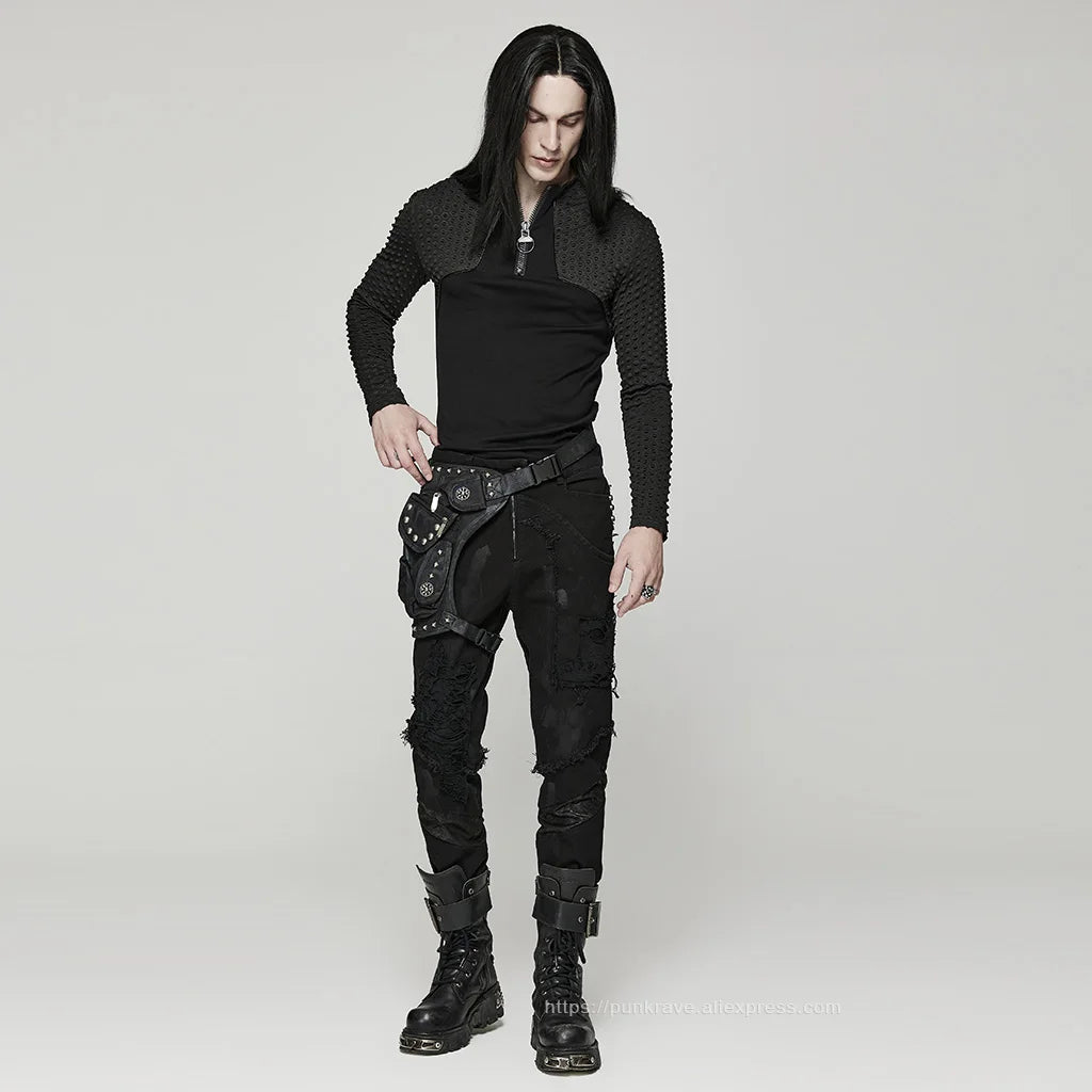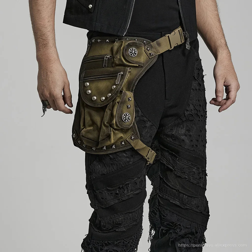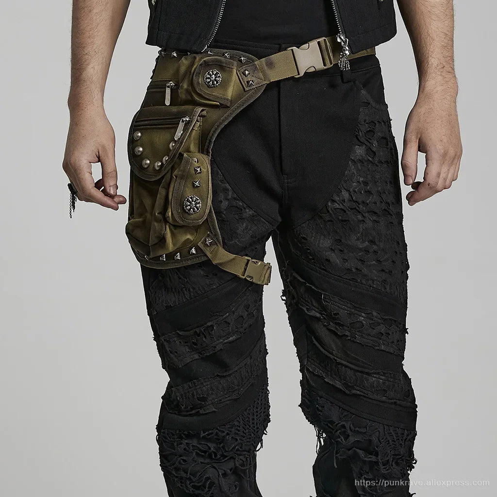 PUNK RAVE Men's Punk Doomsday Irregular Shape Rivets Personalized Bag Webbing Can Adjust Tightness Men Accessories