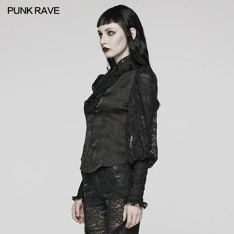 PUNK RAVE Women's Gothic Textured Glossy Gorgeous Shirts Party Club Black Tops Women Clothing
